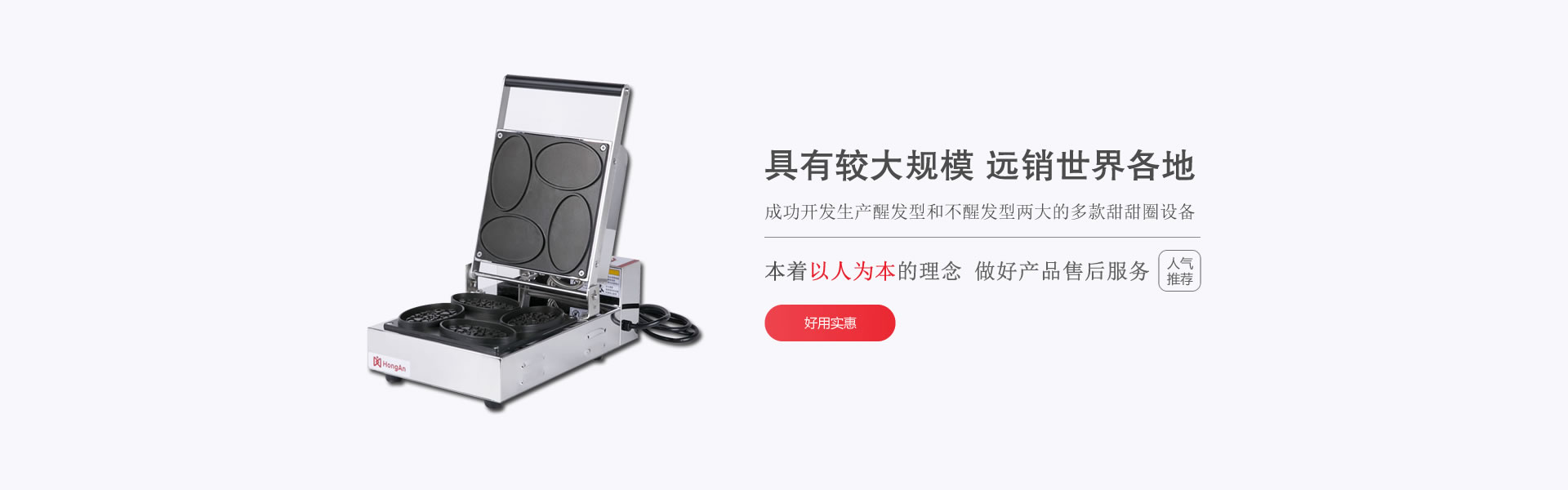 我们依据国内业界需求的不断增加,更因应国外应用趋势,配合客户需求,成功开发生产醒发型和不醒发型两个大类的多款甜甜圈设备。产品远销世界各地,并拥有多家代理商于全世界及全国各地做产品售后服务。我们不断开发新品及提高品质,本着以人为本的理念,我们将是可信赖的供应商。